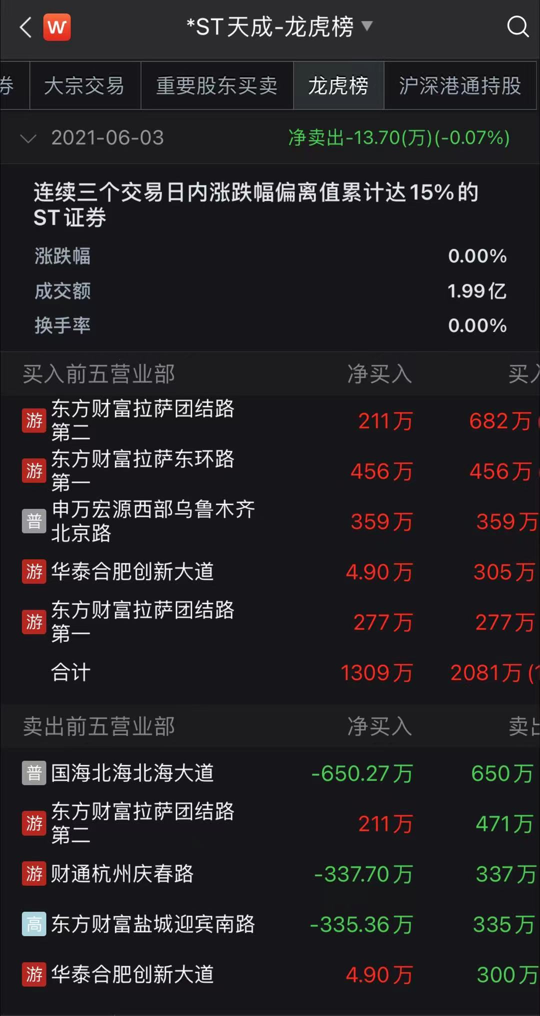 值得注意的是,龙虎榜显示,包括东方财富证券拉萨团结路第一营业部、东方财富证券拉萨团结路第二营业部等在内的游资深度参与了*ST天成的炒作,股价走势已严重背离公司基本面。