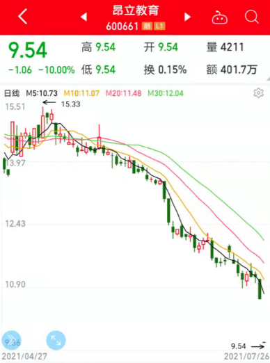 昨日,昂立教育一字跌停,收盘时仍有4.48万手卖单封板。5月以来,昂立教育股价“跌跌不休”,最新收盘价较5月初已累计下跌33.05%。