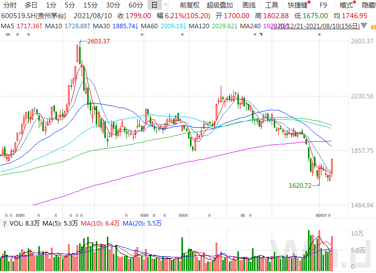 此外,作为股王茅台,罕见放量大涨逾6%,单日涨幅创一年多以来新高,而此前两个月则一路阴跌。