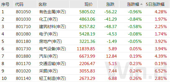 从跌幅居首的板块来看,有色金属、化工、建筑材料等板块跌幅居前,主要涉及的是新能源相关的小金属及锂电池产业链公司。