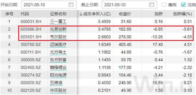 从北上资金的操作手法来看,表现出明显的高抛低吸的特征。8月10日大幅上涨的招商银行、牧原股份、贵州茅台、泸州老窖均位列十大活跃股卖出前列,净卖出额在1-4亿元之间。而在十大活跃股买入前十中,大幅下跌的芯片股兆易创新、韦尔股份均大笔净买入,分别净买入3.48亿元和2.66亿元。
