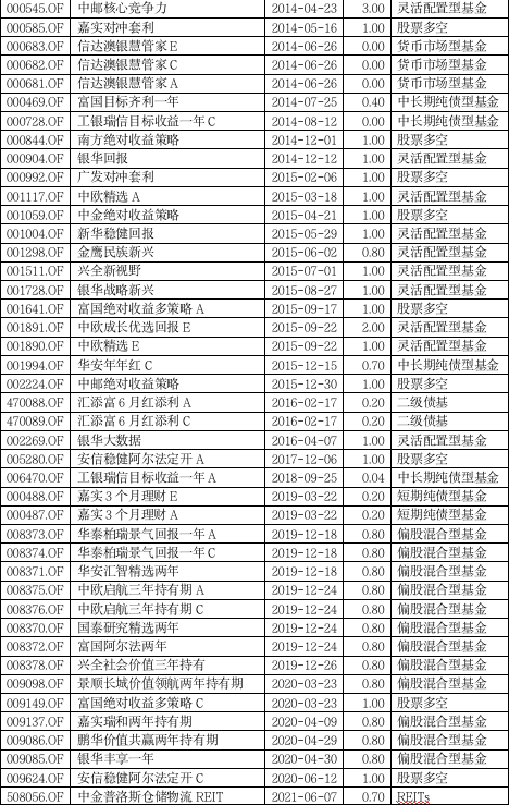 部分采取浮动管理费模式基金一览
