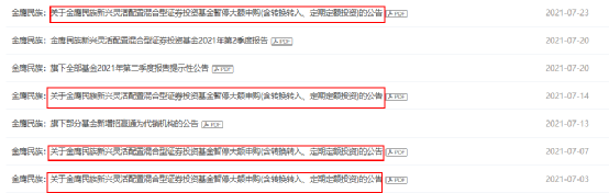 最后在7月23日的公告中,则再次将单日单个基金账户累计申购 (含转换转入及定投)基金份额的最高金额设定为1000元。