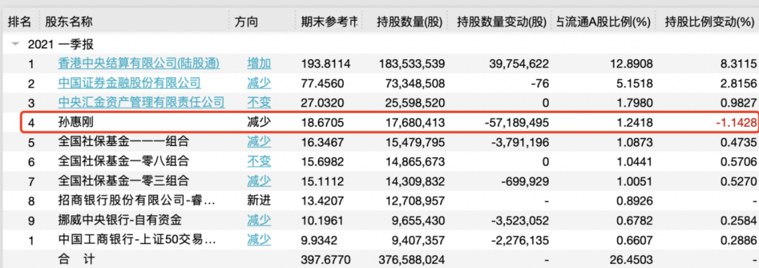 截至2021年6月底,孙惠刚仍持有万华化学1768万股,若以万华化学最新股价110.61元/股计算,其持仓市值仍价值近20亿元。