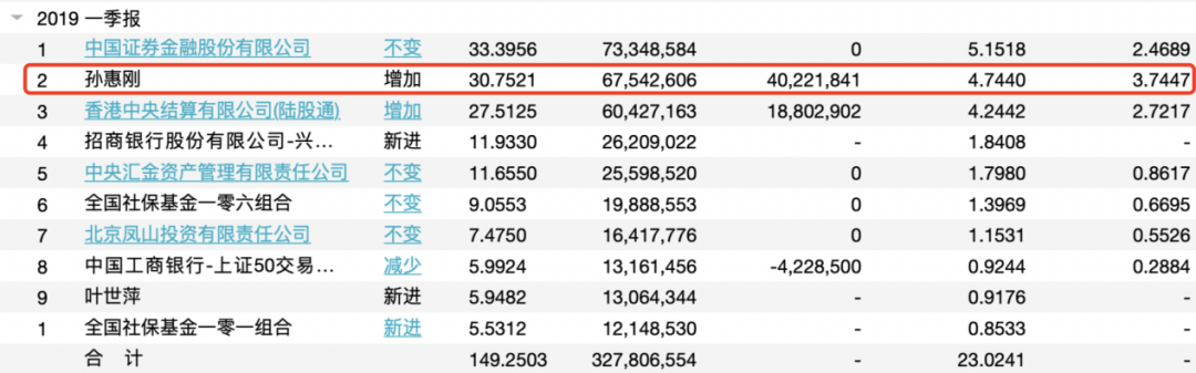 2018年第四季度,孙惠刚补仓了277万股,期末累计持仓2732万股。