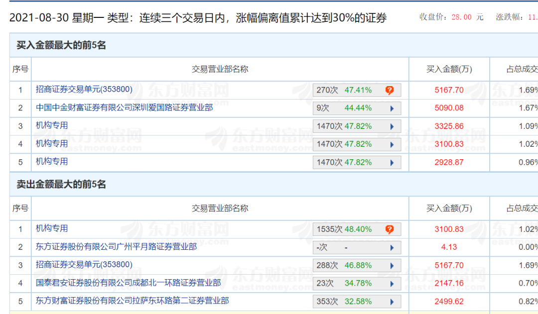 盘后龙虎榜数据显示,天风证券深圳分公司席位卖出3672万元,华泰证券上海来福士广场营业部席位卖出1052万元;买二席位为机构,净买入766万元。