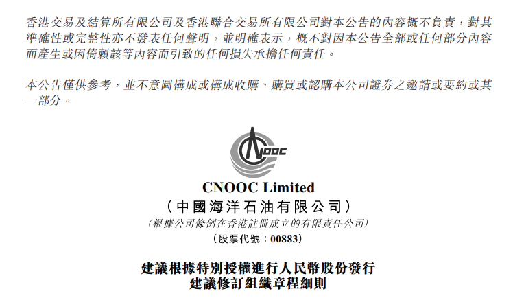 9月26日晚,中国海洋石油(00883.HK)(以下简称“中海油”)发布公告,公司拟申请A股发行上市。