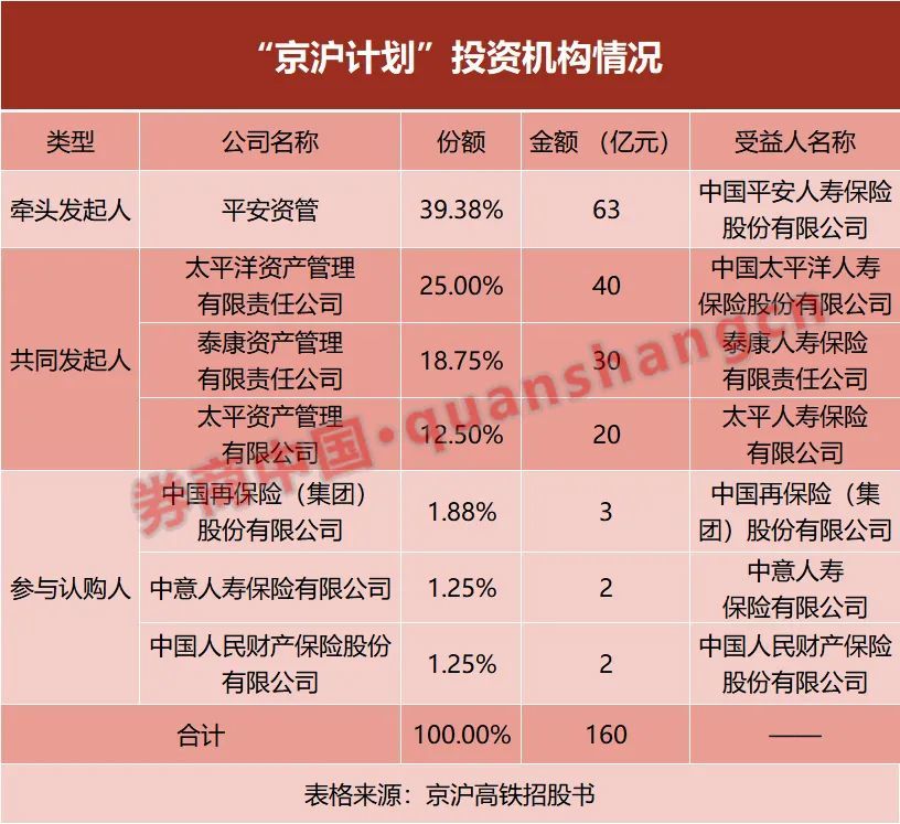 “京沪计划”投资机构共有7家保险机构,牵头发起人为平安资管,共同发起人包括太保资管、泰康资管和太平资管;参与认购方包括中再集团、人保财险以及唯一的合资险企中意人寿。