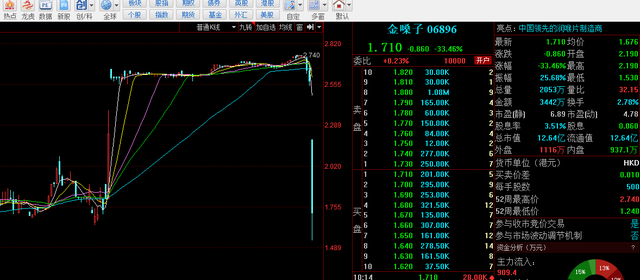 12月1日开盘,金嗓子股价大跌,5分钟跌超40%。截至发稿,金嗓子报价1.71港元,跌幅收窄至33.85%,总市值12.57亿港元。