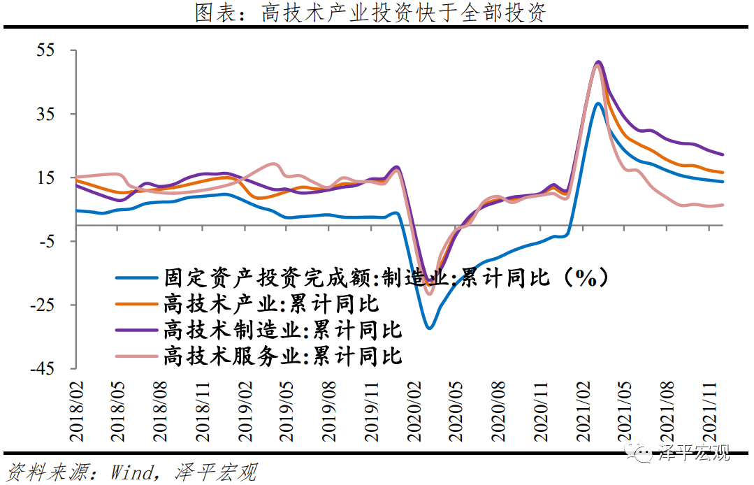 3、制造业投资保持高增,1-11月制造业投资累计同比13.7%。主要原因有三,一是保供稳价政策下,原材料成本回落、中下游企业产品涨价缓解利润受挤压问题,利润向好提升投资意愿;二是缺芯影响有所好转,汽车制造业投资同比大幅回升;三是经济新动能高增。