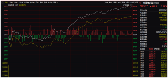 27日,A股市场强劲上涨,其中创业板指数大涨5.52%,创下最近6年多来最大单日涨幅。