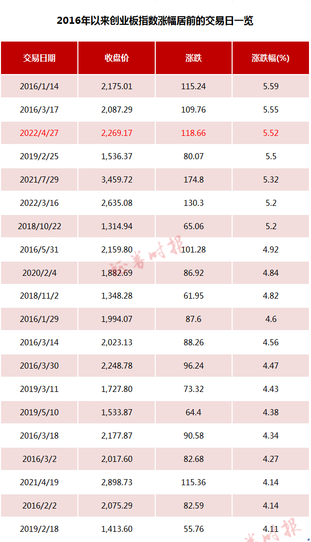 27日,A股市场低开后逐级上行,最终大幅上涨,其中创业板指数上涨5.52%,创下自2016年3月17日之后,最近6年多来最大单日涨幅。