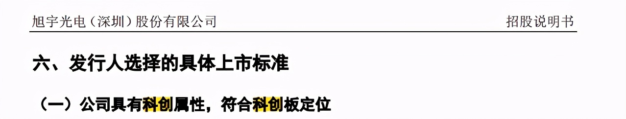 在招股书中,旭宇光电表示,“公司具有科创属性,符合科创板定位”。