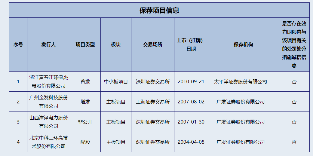 想不过,与同事相比,杨德彬保荐的“首发”项目算不上多。除了浙江富春江环保热电股份有限公司是“首发”外,其余三个保荐项目分别是“增发”、“非公开”和“配股”。