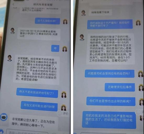 当乘客将此情况反应哈啰顺风车客服时,先是得到“如果封禁他,很有可能猜到是你投诉的,您确定要我们这么做么”的回复,而后,客服告知乘客已封禁了该车主。然而,乘客发现平台并未封禁车主且收到骚扰电话,客服却以“如后续还存在违规行为,可能会对他的账号进行封禁处罚”及补偿15元优惠券为由回应。