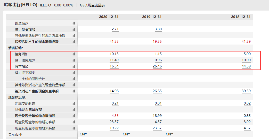 从现金流量表上也可以看到哈啰出行的窘迫,债务猛增10.13亿元,现金及现金等价物负净增长4.35亿元。