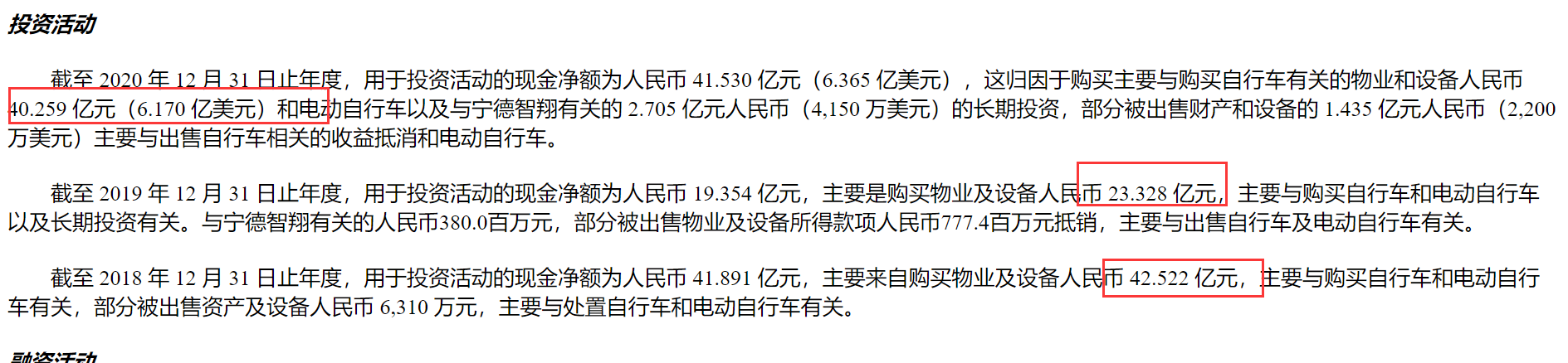 共享单车要想能保住市场占有率和用户体验,就需要大量的单车投入。据招股说明书,2018-2020年哈啰出行用来购置新共享单车及电动自行车的费用分别为42.52亿元、23.33亿元和40.26亿元,合计超过百亿。
