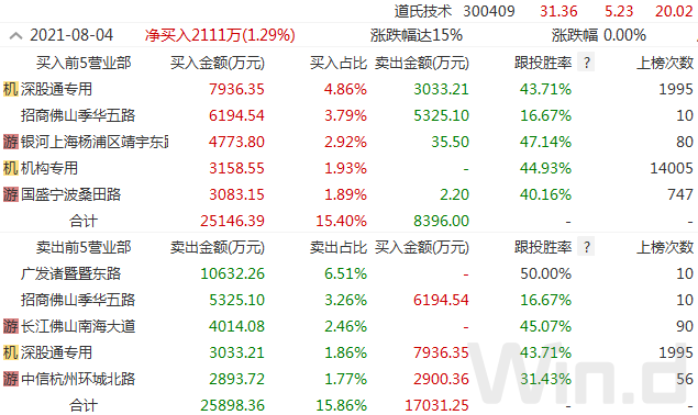 从盘后龙虎板来看,部分热门公司机构追高买入。8月4日,20cm涨停的道氏技术,一机构席位净买入3000多万元,深股通席位亦净买入4000多万元,同时资金分歧亦较为明显,买入前五席位和卖出前五席位基本持平。