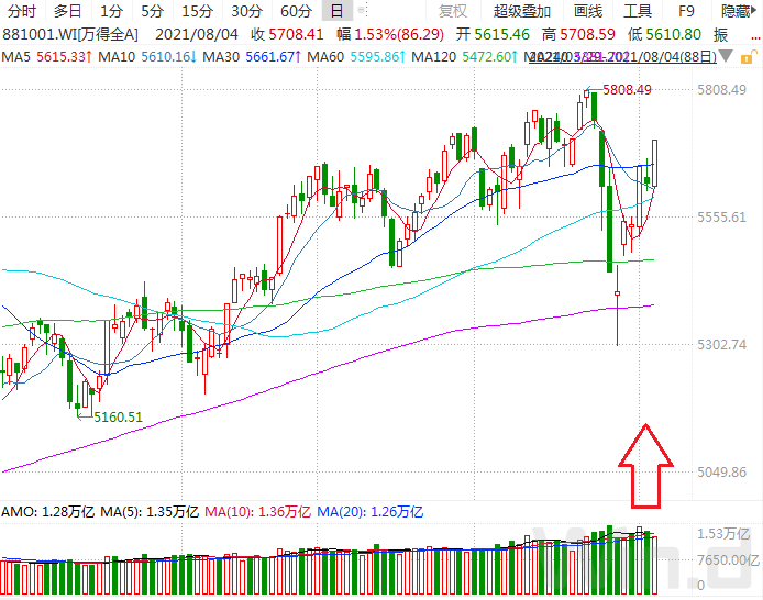 截至8月4日收盘,上证指数涨0.85%报收于3477.22点;深成指涨1.72%报收于14990.11点;创业板指涨2.47%报收于3563.13点,万得全A总成交1.28万亿。