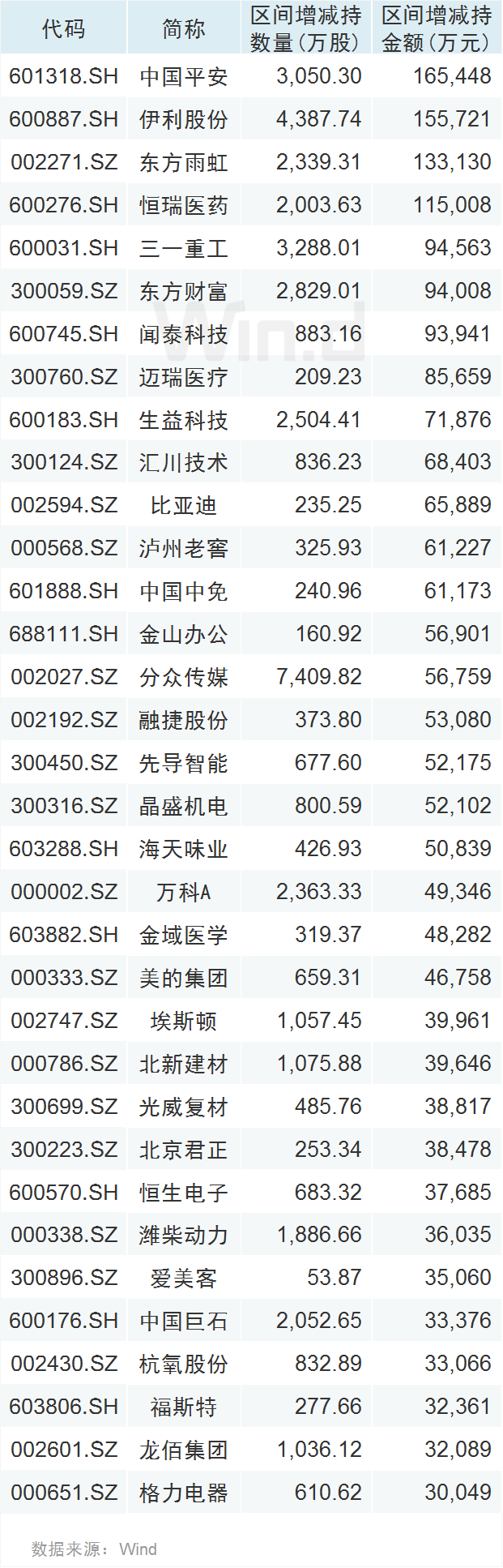 (注:增减持金额 = 增减持数量 * 8月3日收盘价,下同)