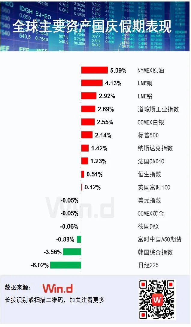 股市方面,国庆期间,全球股市呈现先抑后扬走势。