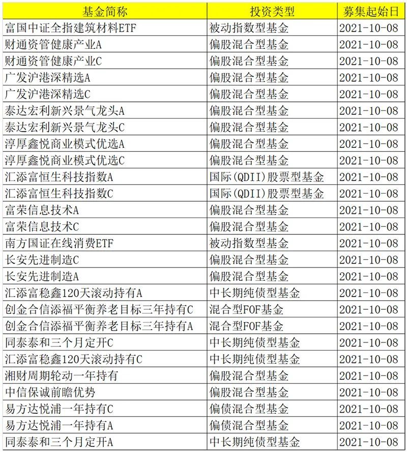 放眼10月份,多只权益基金等候入场。