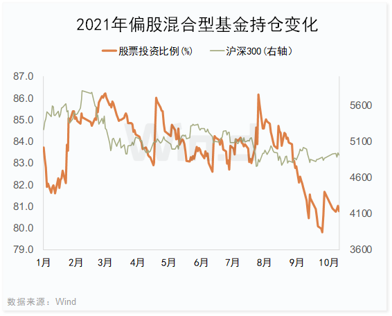 偏股混合型基金最新仓位为80.77%,较10月初下降0.92个百分点,较8月份高点则下降了5.41个百分点。