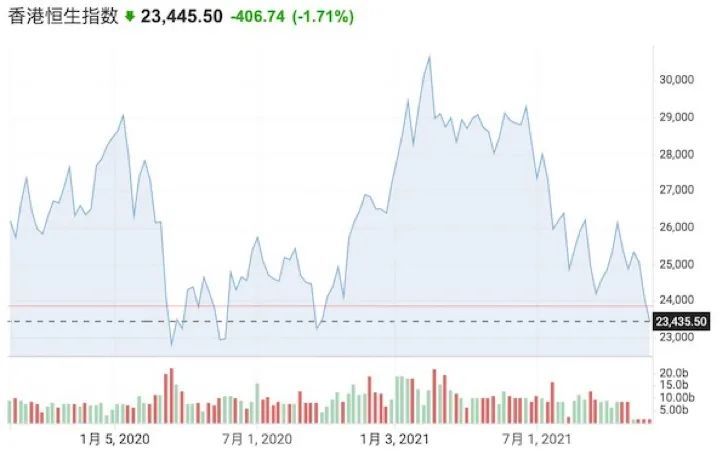 11月30日,香港恒生指数跌幅达1.71%报23445点,创下年内新低,较至年内高点大跌近25%。交银国际研究部主管洪灏表示,“至于目前是否应该抄底,需要关注的是,底部是最为凶险的,要警惕波动或仍会加剧。”也有观点认为,未来中概股的持有人结构将发生大幅变化,尤其是一些美国基金。