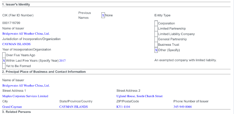 来自SEC的信息显示,桥水2017年10月在开曼群岛注册了“桥水全天候中国”基金。