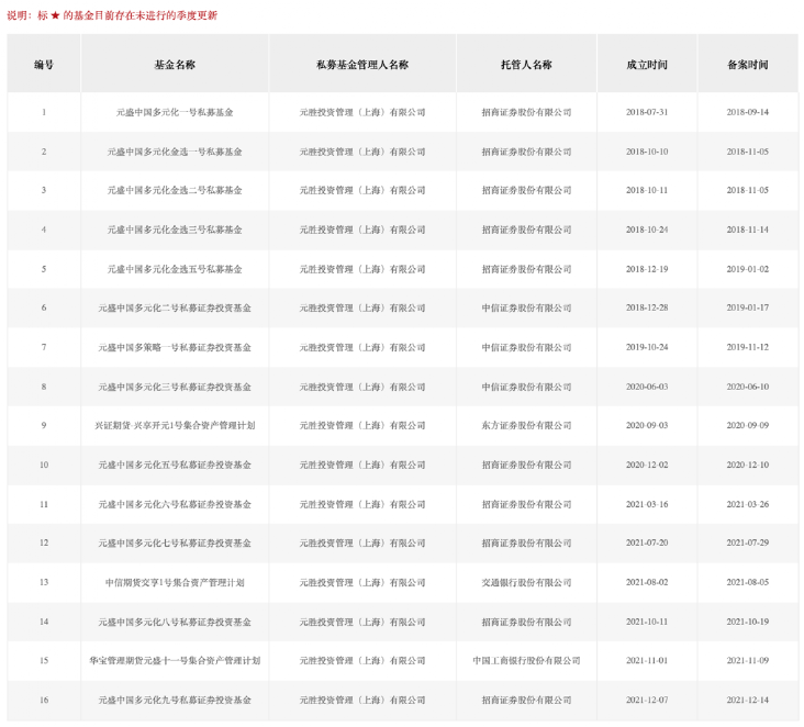 元盛境内私募的产品备案信息