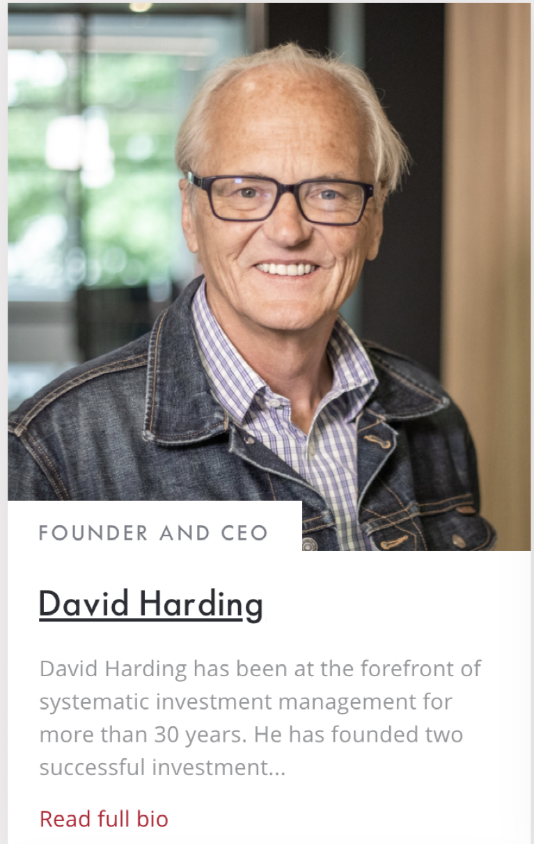 元盛创始人、CEO 大卫.哈丁,为系统化交易届大名鼎鼎的人物。当今全球对冲基金界有两家顶级机构出自他手。他先是和朋友联合创立了AHL,后来AHL卖给了英仕曼集团,成为英仕曼集团CTA策略单元。1997 年他又创立了元盛资产管理。元盛资产管理顶峰时资产管理规模一度超过300亿美元。虽然,最近几年规模有较大幅度缩水,但是它依然是全球CTA策略最有影响力的几大机构之一。