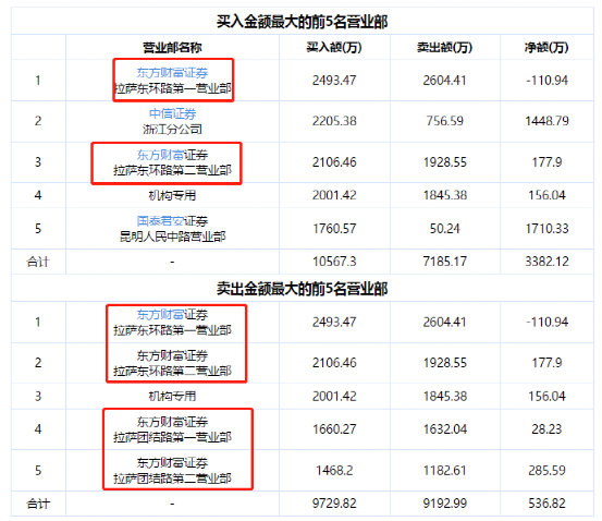 一个值得关注的信号是,1月6日的盘后龙虎榜来看,又是散户高位博杀的画风,几家东财拉萨营业部席位激烈博弈,风头强过机构和游资席位。而近期的几只妖股如三羊马、九安医疗等熄火,基本都是类似的画风。