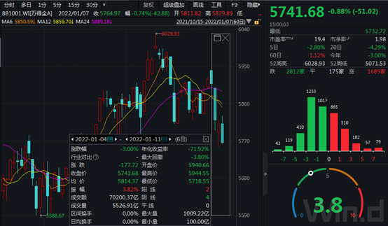截至1月11日收盘,新年以来上证指数小幅下跌1.99%,深成指跌幅较大达4.27%,而万得全A则下探了3.0%,2022年开局市场分化,资金“杀”高位中小创明显。