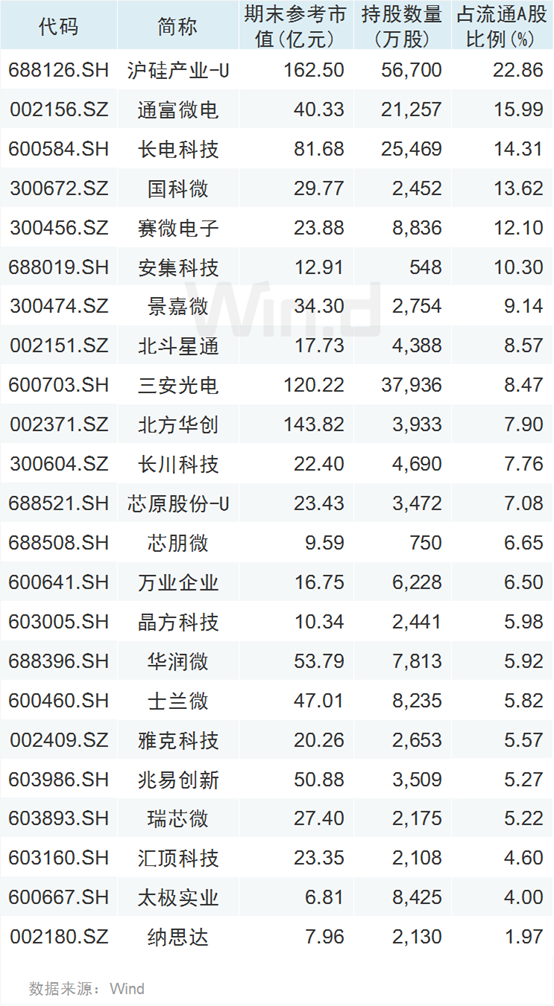 最近两年,半导体板块个股普遍涨幅巨大,在大基金开启减持下,这些个股需要注意。Wind数据显示,三季报中国家集成电路产业投资基金股份有限公司共出现在23只股票的十大股东之中,期末参考市值合计为 987.11 亿元。其中,沪硅产业-U、通富微电、长电科技、国科微、赛微电子、安集科技、景嘉微、北斗星通、三安光电等9家公司占流通A股比例超过8%。