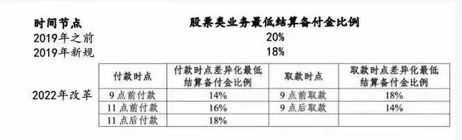 在华泰金融组看来,此次改革,采用差异化的最低结算备付金比例结算方式,结算参与人适用的最低结算备付金比例=70%乘付款时点差异化最低结算备付金比例+30%乘取款时点差异化最低结算备付金比例。