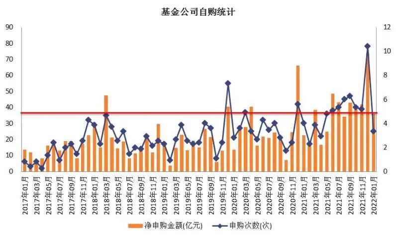 从近5年基金公司的自购情况来看,有11次单月自购金额超过5亿元,其中7次发生在2021年。