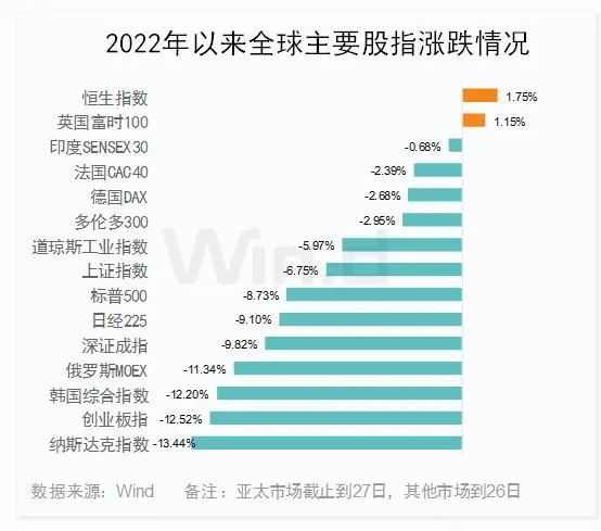 其实,2022年开年以来,在美联储加息预期强烈下,全球股市多数股指表现较差。