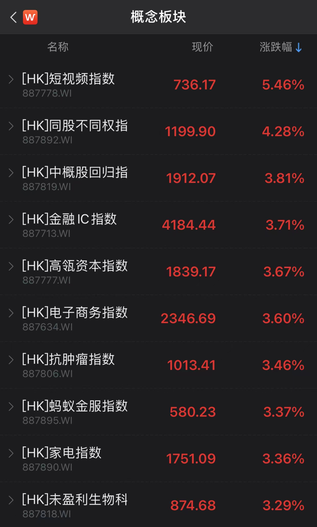 更细分的Wind港股概念指数中,短视频、同股不同权、中概股回归等细分概念表现抢眼。