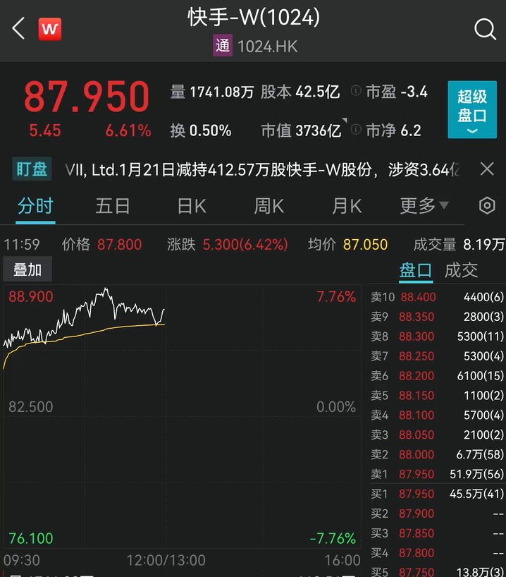 快手盘初大幅走高,随后一路走强,收涨6.61%,领跑恒科指成分股。
