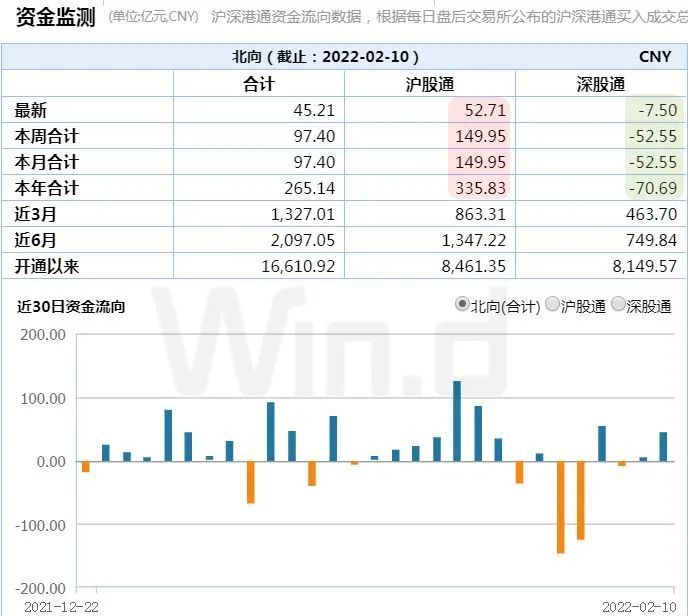 北上资金终于有告别酱油角色的苗头,午后积极买入。Wind数据显示,北向资金尾盘加速流入,全天净买入45.2亿元。其中沪股通净买入52.71亿元,连续4日净买入;深股通净卖出7.5亿元,已连续6日净卖出。
