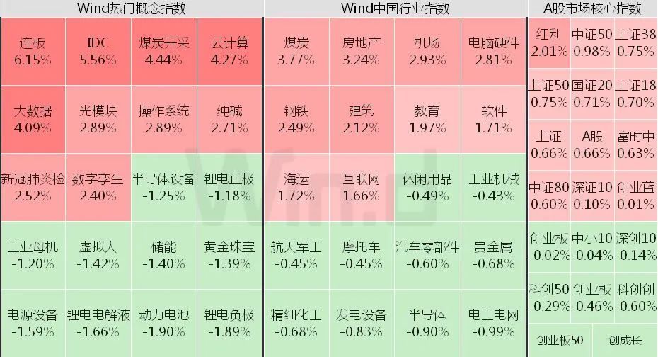 地产、东数西算、基建等板块在消息刺激下走强。个股方面,贵广网络、延华智能、首都在线、云赛智联、浙大网新、数据港、美利云、佳力图、安源煤业、泰禾集团、黑牡丹、宁波建工、诚邦股份、元成股份、浙江建投等强势涨停。