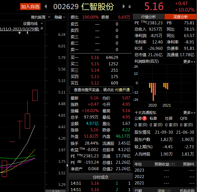还有仁智股份,虽然相比准油股份“弱”了一点,过去5个交易日收获4个涨停板,涨幅也超过了50%。