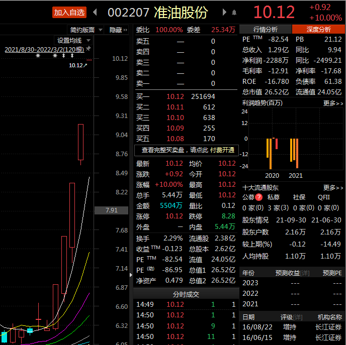 准油股份在公告中表示,目前,公司业务收入绝大部分来源于国内的油田技术服务,公司及子公司均没有油气生产业务。除油水井大修等业务结算价格已于2021年9月开始恢复到正常年份水平外,公司其他业务项目的结算价格尚未恢复。因此,近期国际油价的上涨对公司未来业绩的影响仍存在不确定性。特此提醒广大投资者理性投资,注意风险。