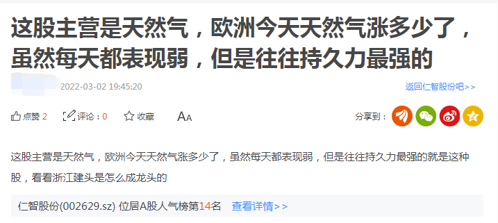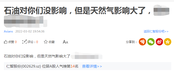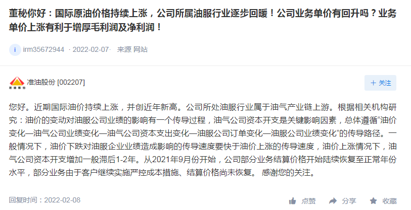 对于仁智股份在公告中表示的“油价上涨不会对公司油服业务业绩产生影响”,投资者并不认可:“石油对你们没影响,但是天然气影响大了。”