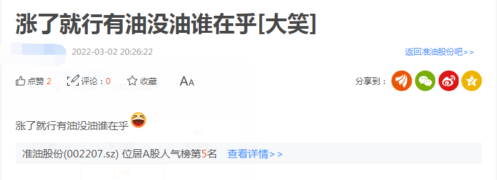 而在准油股份股吧中,更有投资者直接表示:“涨了就行,有油没油谁在乎”。