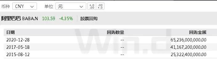 自2020年12月以来, 阿里 已经两次扩大区回购规模。2020年12月28日, 阿里 董事会授权回购100亿美元的美国存托股。2021年8月3日, 阿里 宣布将回购规模扩大至150亿美元。2022年3月22日, 阿里 将股份回购规模扩大至250亿美元,有效期至2024年3月。