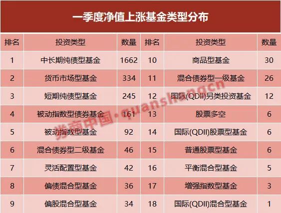 一季度收官,全市场基金业绩已经全部揭晓。Wind数据显示,一季度商品主题类基金表现最好,低风险偏好基金表现稳健,QDII型基金分化,受A股市场表现不佳影响,偏股基金表现最差。