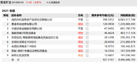 目前来看,邓晓峰持股市值最大的是矿业龙头股紫金矿业,旗下高毅晓峰2号致信基金等三只产品去年四季度大举增持2079.99万股,合计持股数量增至9.41亿股,期末持股市值高达91.26亿元。紫金矿业今年以来涨幅超过18%。