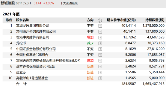 年报显示,新城控股在2021年实现营业收入1682.3亿元,同比增长15.6%;归母净利润126.0亿元,同比下降17.4%。
