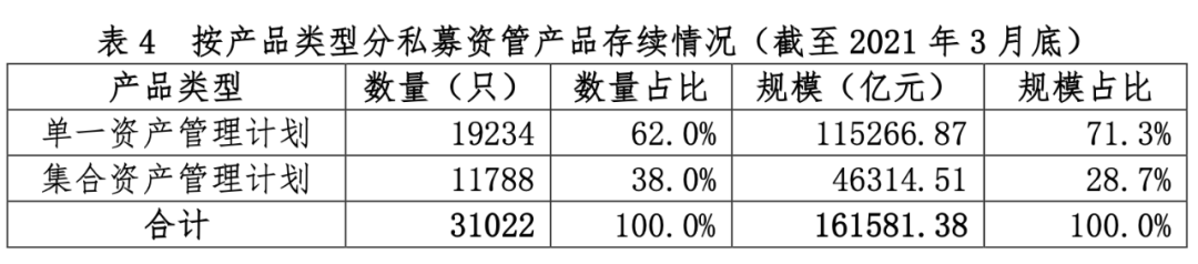 事实上,虽然私募资管整体规模有所下降,但产品结构却得到了明显改善。数据显示,截至3月底,存续单一资产管理计划(以通道产品为主)规模为8.18亿元,同比减少40.87%;占私募资管总比例为53.19%,相比去年同期的71.3%,也大幅减少了近20个百分点,显示证券资管行业主动管理转型卓有成效。